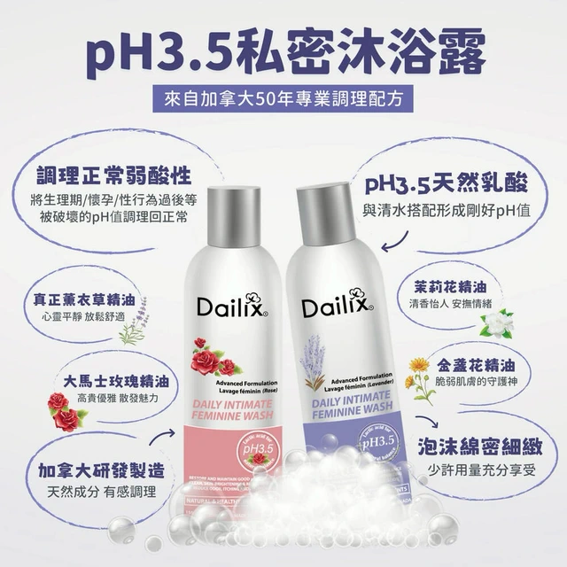 [快速出貨] 照顧妳的私密健康【Dailix】pH3.5進階調理私密沐浴露 魅力玫瑰/舒眠薰衣草 250ml 加拿大製造 ★LINE禮物獨家贈生理用品組★