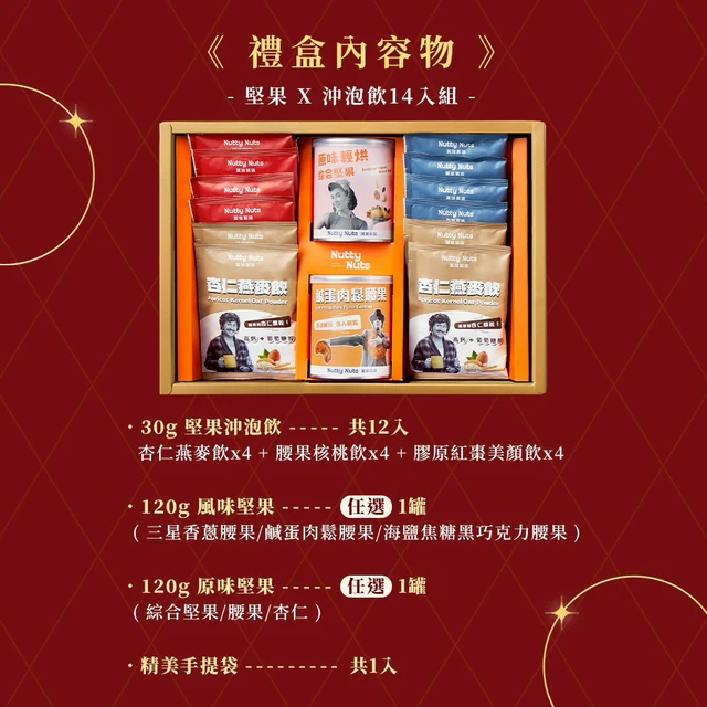 【鬧滋鬧滋】金耀典藏禮盒-堅果 X 沖泡飲11入(附提袋)_感謝禮_創意堅果_送禮首選