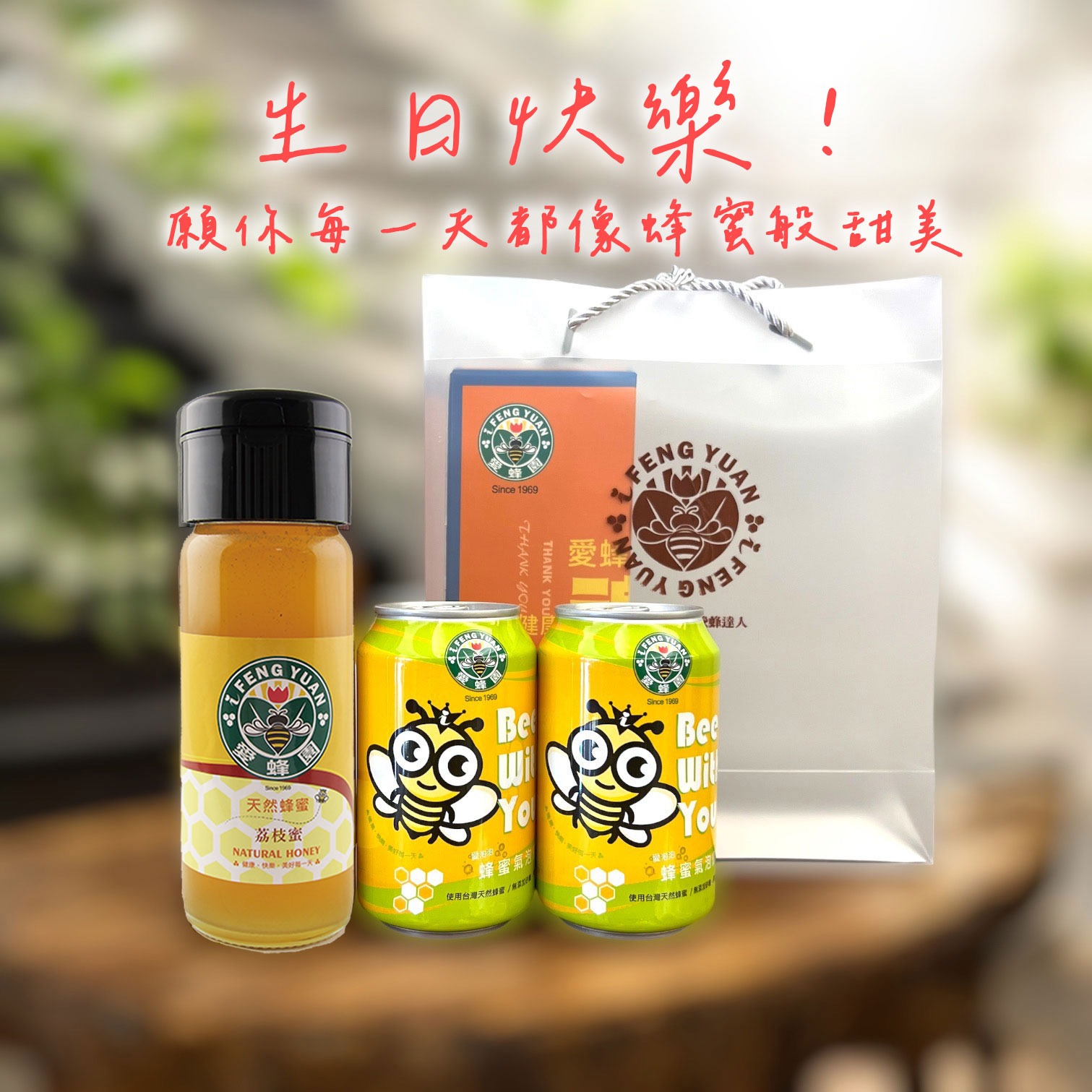LINE禮物獨享方案【新竹蜂蜜 愛蜂園】金黃百花蜂蜜430g(禮盒裝)+蜂蜜氣泡飲X2瓶