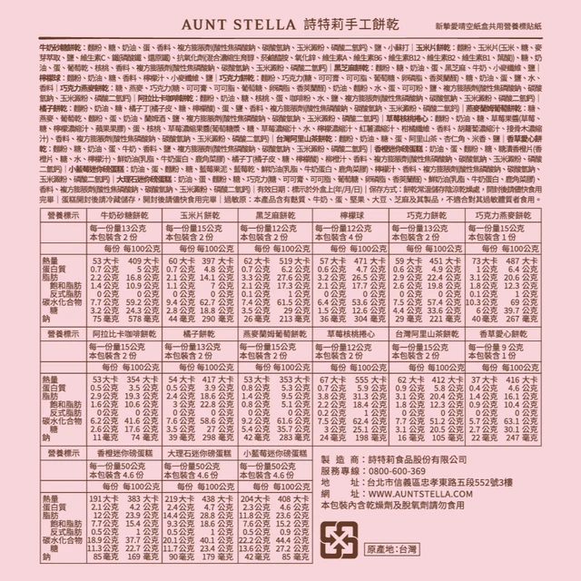 其他說明事項: 客服信箱: webshop@auntstella.com.tw 客服時段:週一~週五 10:00~18:00 官網資訊:https://auntstella.com/ LINE官方帳號:https://lin.ee/tMvHnJH