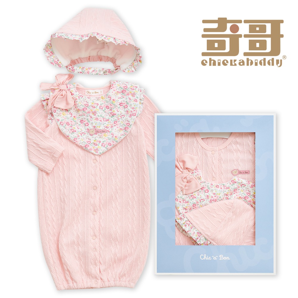 【奇哥】有機棉小熊妙妙裝//連身衣3件組禮盒 3-6個月|妙妙裝+帽子+手搖鈴 附提袋 嬰兒禮盒 彌月禮盒 新生兒禮盒