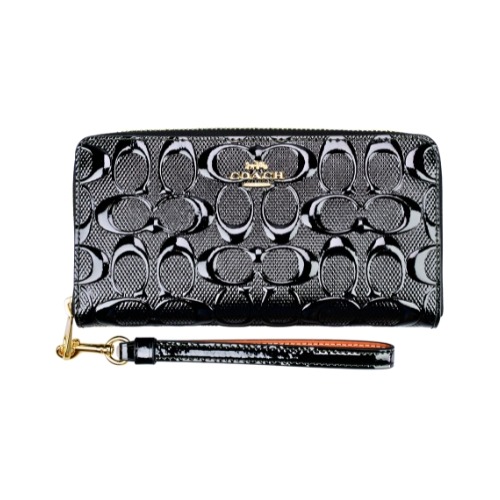 [平輸版] 【COACH】黑色荔枝紋附活動卡夾皮革手掛帶拉鍊長夾 真品平輸