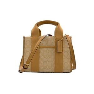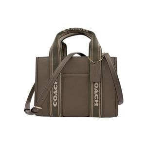 [平輸版] 【COACH】灰藍色荔枝紋LOGO字印帆布織帶手提/斜背小款立體方包 真品平輸