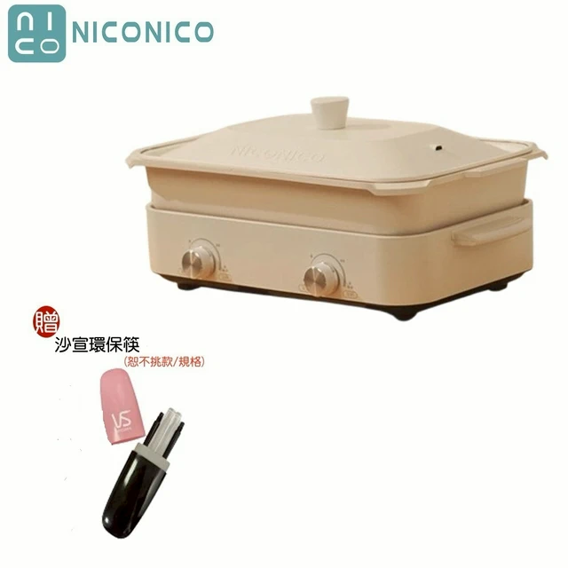 【NICONICO】雙邊溫控電烤盤 料理鍋 電烤盤 電火鍋 贈樂活野餐保鮮盒 NI-K2001
