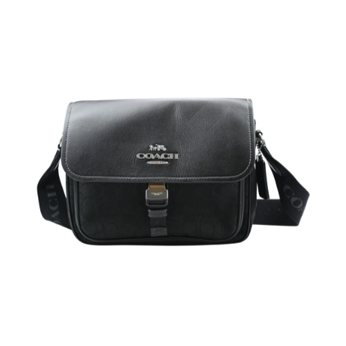 [平輸版] 【COACH】焦糖棕C LOGO麂皮後拉鍊袋中款水餃斜背男包 真品平輸