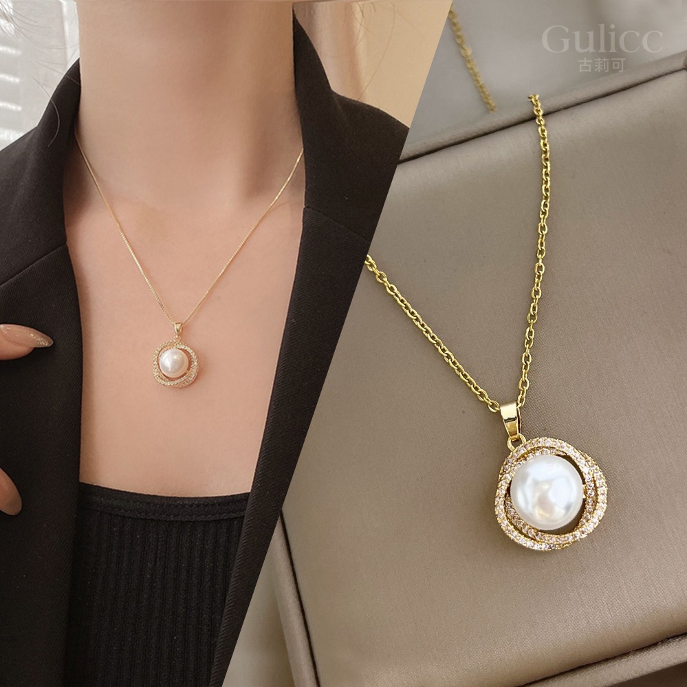 〔快速出貨〕【Gulicc】項鍊 交叉鑲鑽 輕奢珍珠