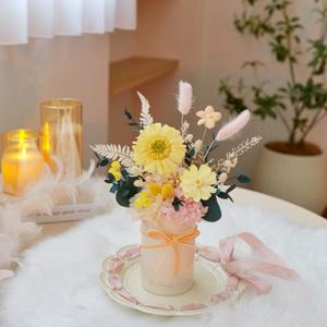 【& Grace Flower永生花禮花藝店】溫暖米黃棉花索拉花束 永生花 送禮 質感 氣氛 節日送禮 禮物