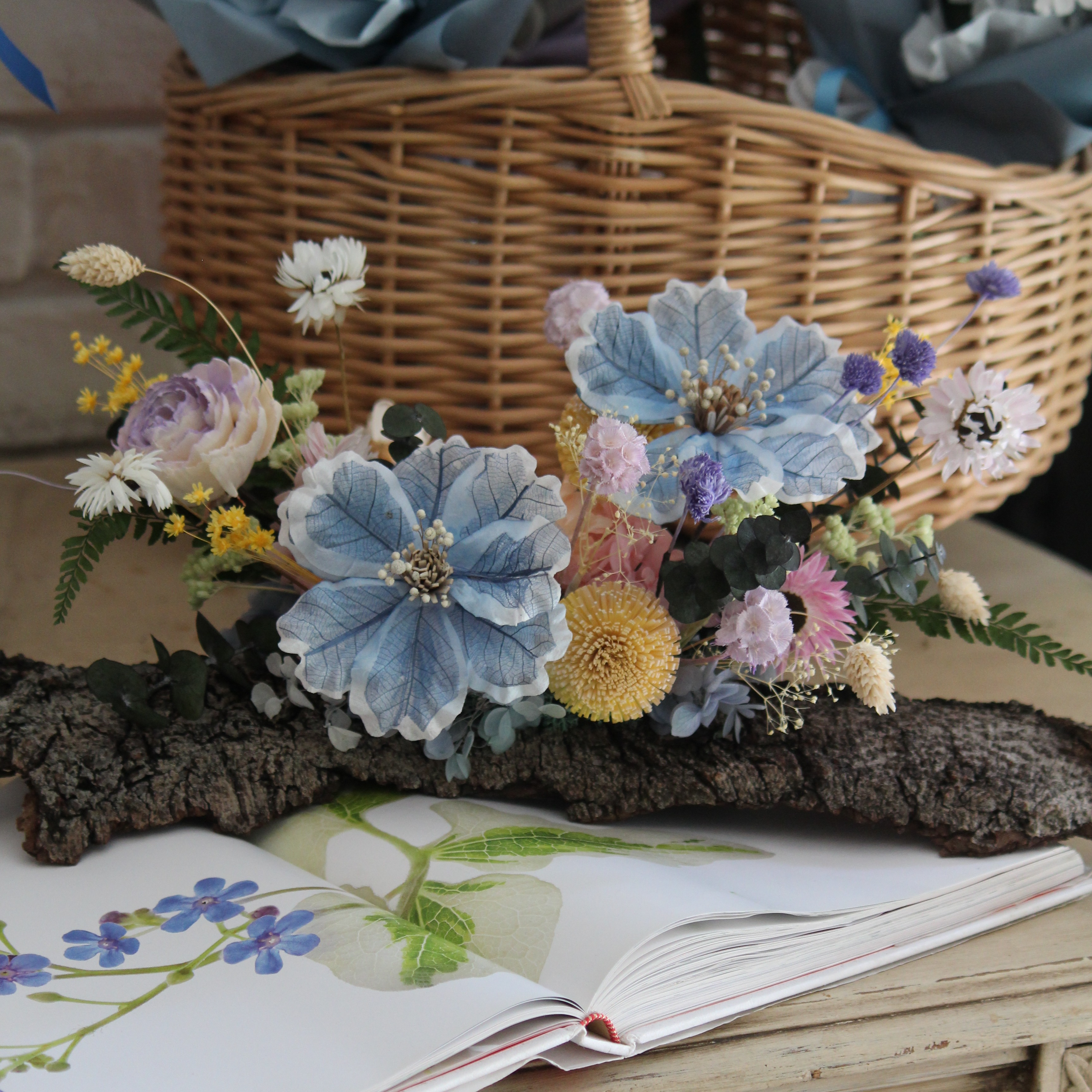 【& Grace Flower永生花禮花藝店】 藍色系棉花索拉花束 永生花 送禮 節日送禮 禮物 《全台寄送》