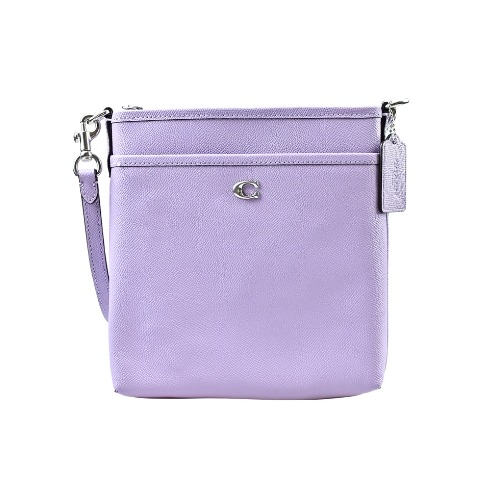 [平輸版] 【COACH】 CHARLOTTE 金屬光澤紫粉色C LOGO PVC橫式手提肩背小包 真品平輸