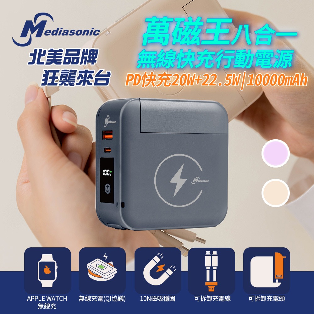 阿愣金馬年好禮,送180元優惠券!防爆電池! ONAIR 有標wh CCC認證 K1 固態行動電源 10000mAh 全功能自帶線 磁吸行動電源 固態防爆 可登機