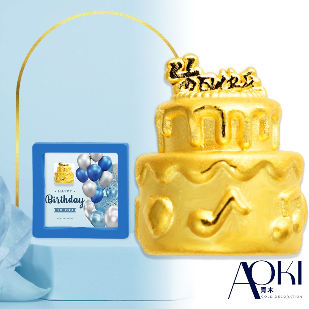 【快速出貨】【AOKI青木】黃金擺件(處女座) 生日蛋糕 理想黃 約重0.25錢±0.03 (生日禮物 節日 送禮)
