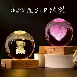 🧡水瓶座生日快樂🧡快速出貨【COZY PLUS+】客製化禮物系列-3D內雕七色發光水晶球小夜燈 發光木質底座擺件 夜燈 紀念禮物 室內擺飾 生日禮物 聖誕節禮物 畢業禮物 婚禮小物#CP0087