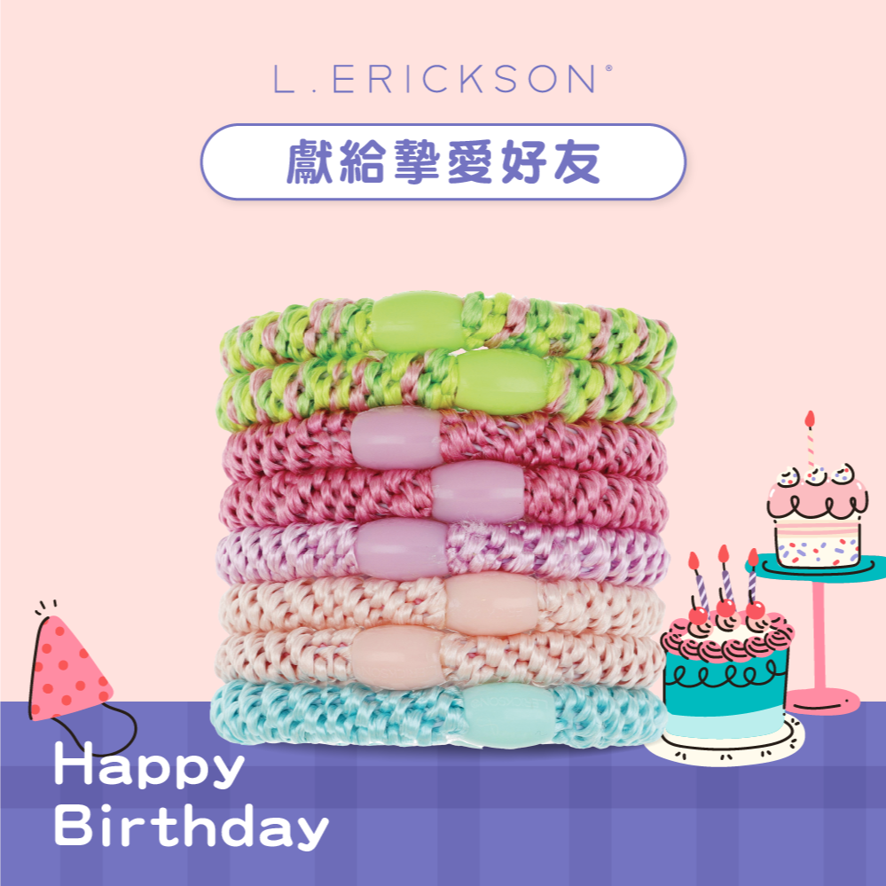 快速出貨⚡用髮圈精緻你的每一刻【L. ERICKSON 官方旗艦】粗版 彈力髮圈 8入 〈莓果粉藍〉