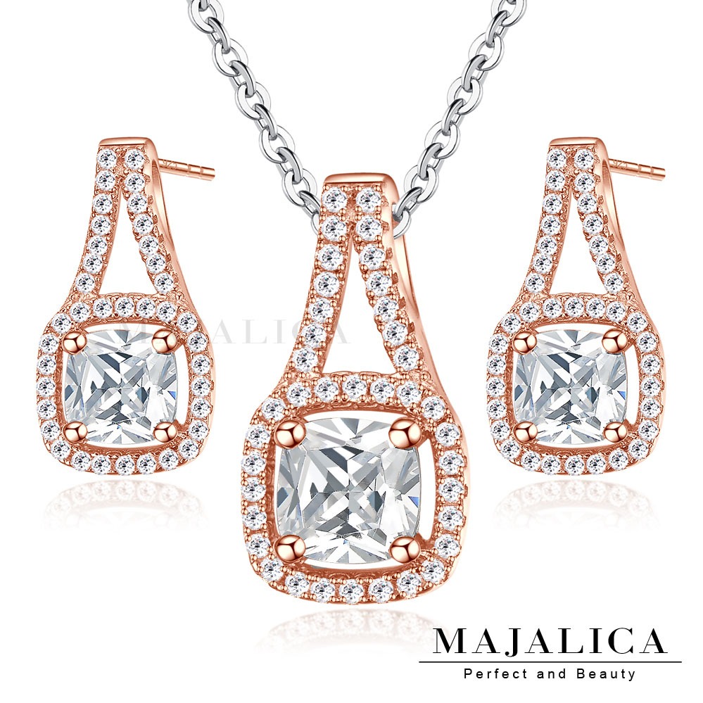 母親節禮物【Majalica】925純銀項鍊.璀璨花漾系列.圓三角形鑽.項鍊耳環套組