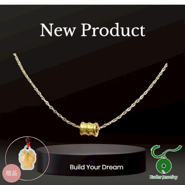 [快速出貨]【Kuder Jewelry】黃金上身富貴加分,黃金相思金豆項鍊,買1送1贈小金龍項鍊