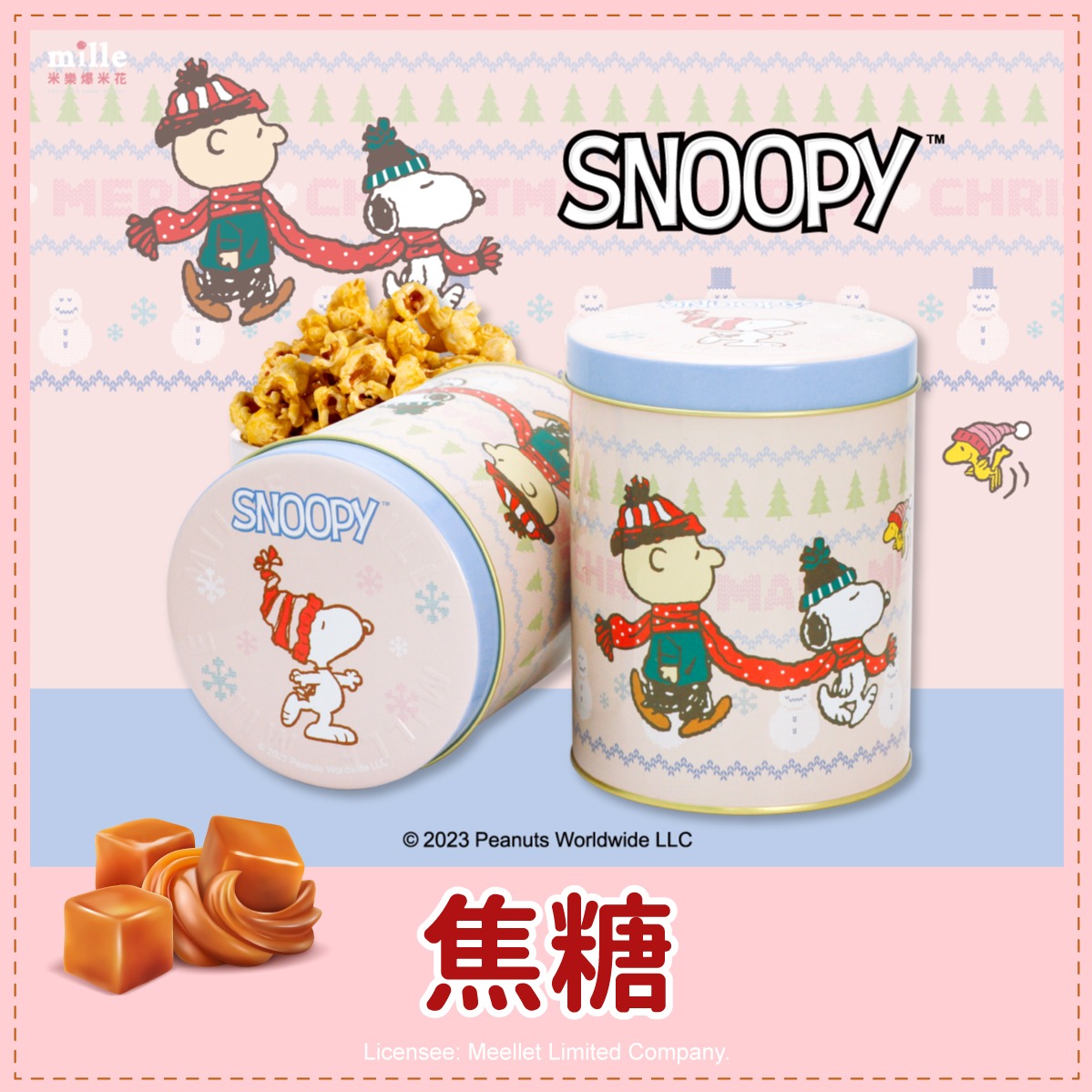 【米樂繽紛爆米花】史努比藍冬天外套罐爆米花