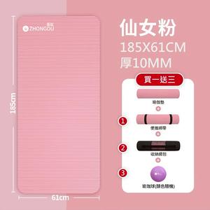 【 買一送三】10MM厚 185×61CM 瑜珈/防滑墊/地墊 XFE-YG16 (贈綁帶、背袋、瑜珈球或拉力繩)