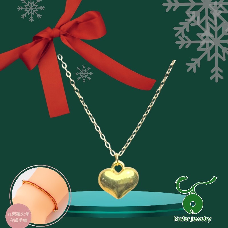 [快速出貨]【Kuder Jewelry】黃金全心愛妳墜飾(約0.07-0.05錢)大小款,任買一條贈本命年守護手鍊一條, 配永生玫瑰禮盒 『LINE禮物獨家組合』