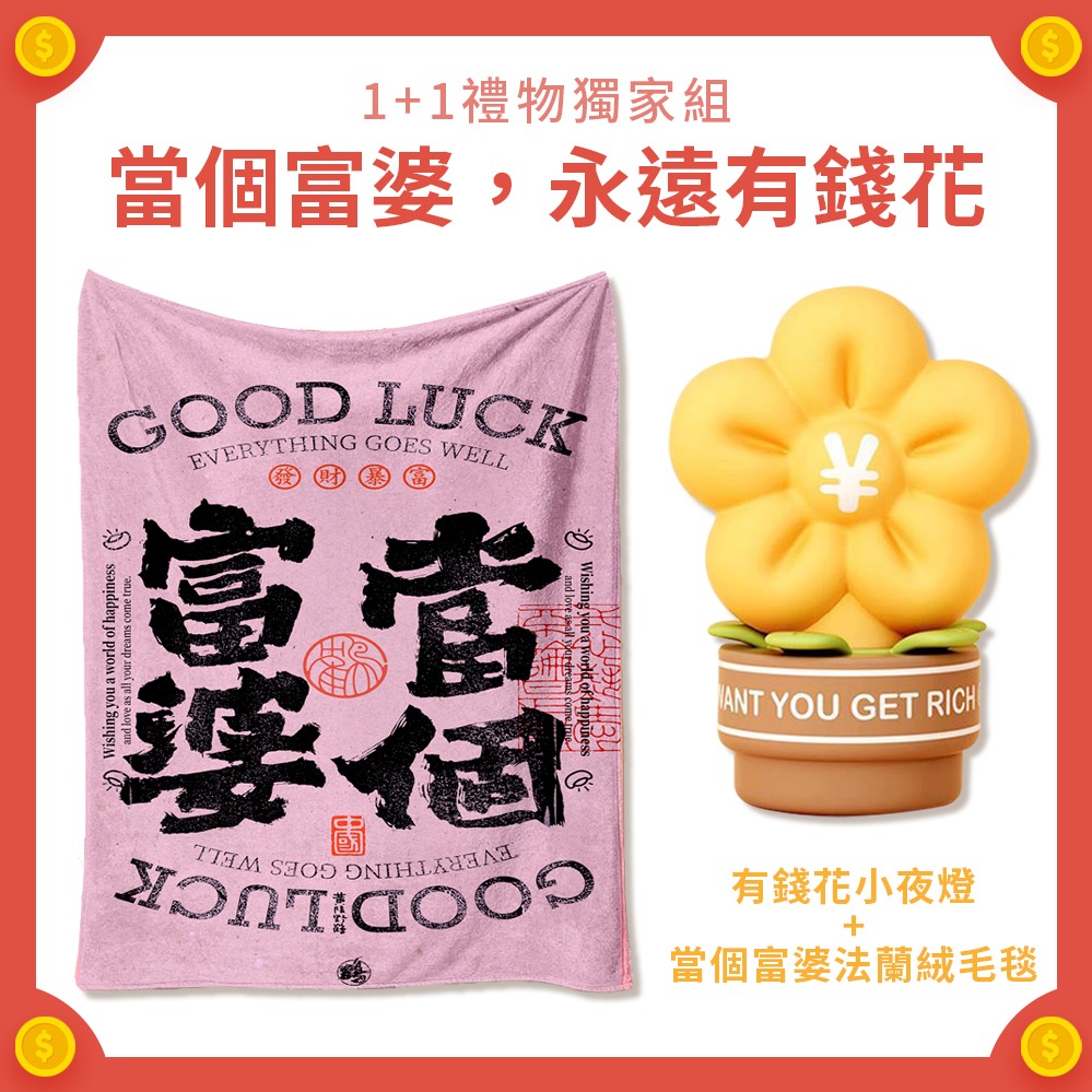 🧨新年快樂🧡快速出貨【COZY PLUS+】GET RICH富婆招財法蘭絨毯JAN07 #CP0293 招財 午睡毯 披肩毯 沙發蓋毯 禮物 生日禮物 聖誕節禮物 交換禮