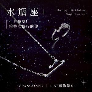 【SPANCONNY】水瓶座生日快樂💝星座生日禮盒|純銀項鍊+開口戒指『LINE禮物獨家禮盒』