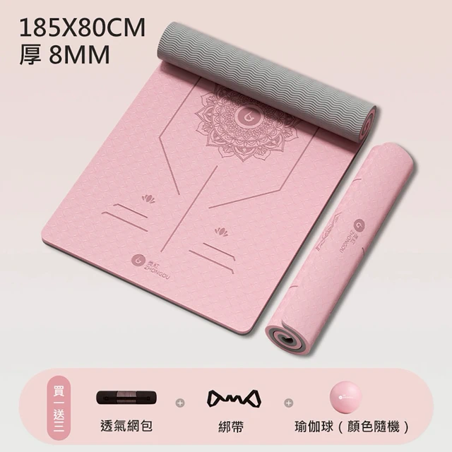 【買一送三】6MM厚 185×61CM 正位線 雙色瑜珈墊 XFE-TP68 (贈綁帶、背袋、瑜珈球或拉力繩)