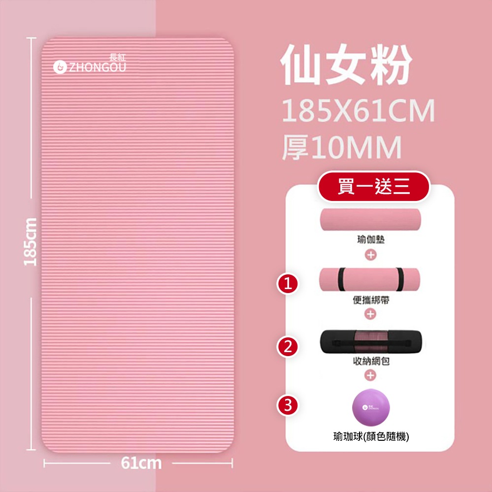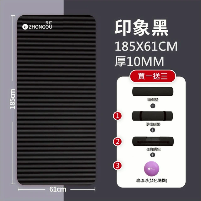 【X-BIKE 買一送三】15MM厚 185×90CM 正位線 大尺寸防滑耐磨瑜珈墊 健身墊 TP189015B(贈綁帶、背袋、瑜珈球)