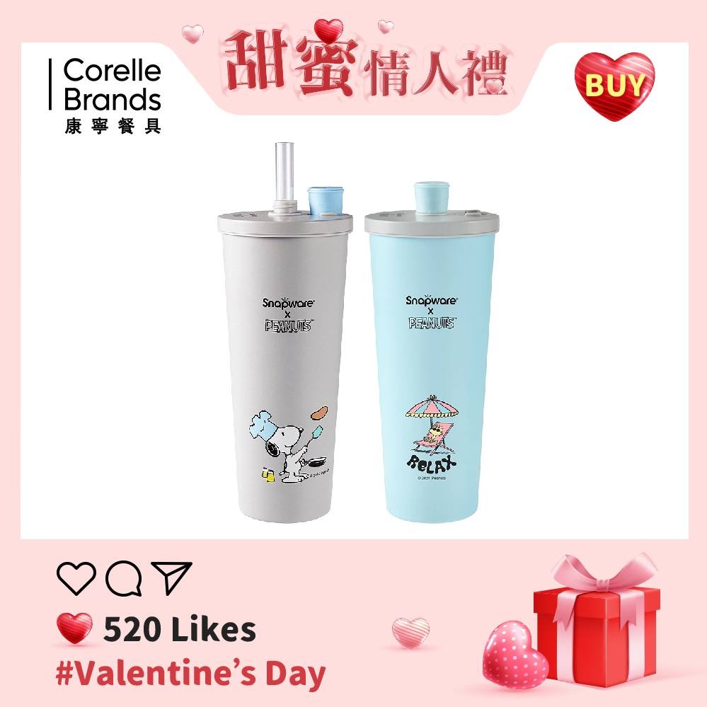 買1送1【康寧 Snapware】SNOOPY史努比 鋅light輕瓷保溫保冰跳跳吸管杯850ml+Tritan吸管杯840ml