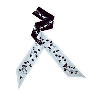 [平輸版] CHANEL 香奈兒小狗雙面Twilly真絲絲巾/髮帶(黑白)