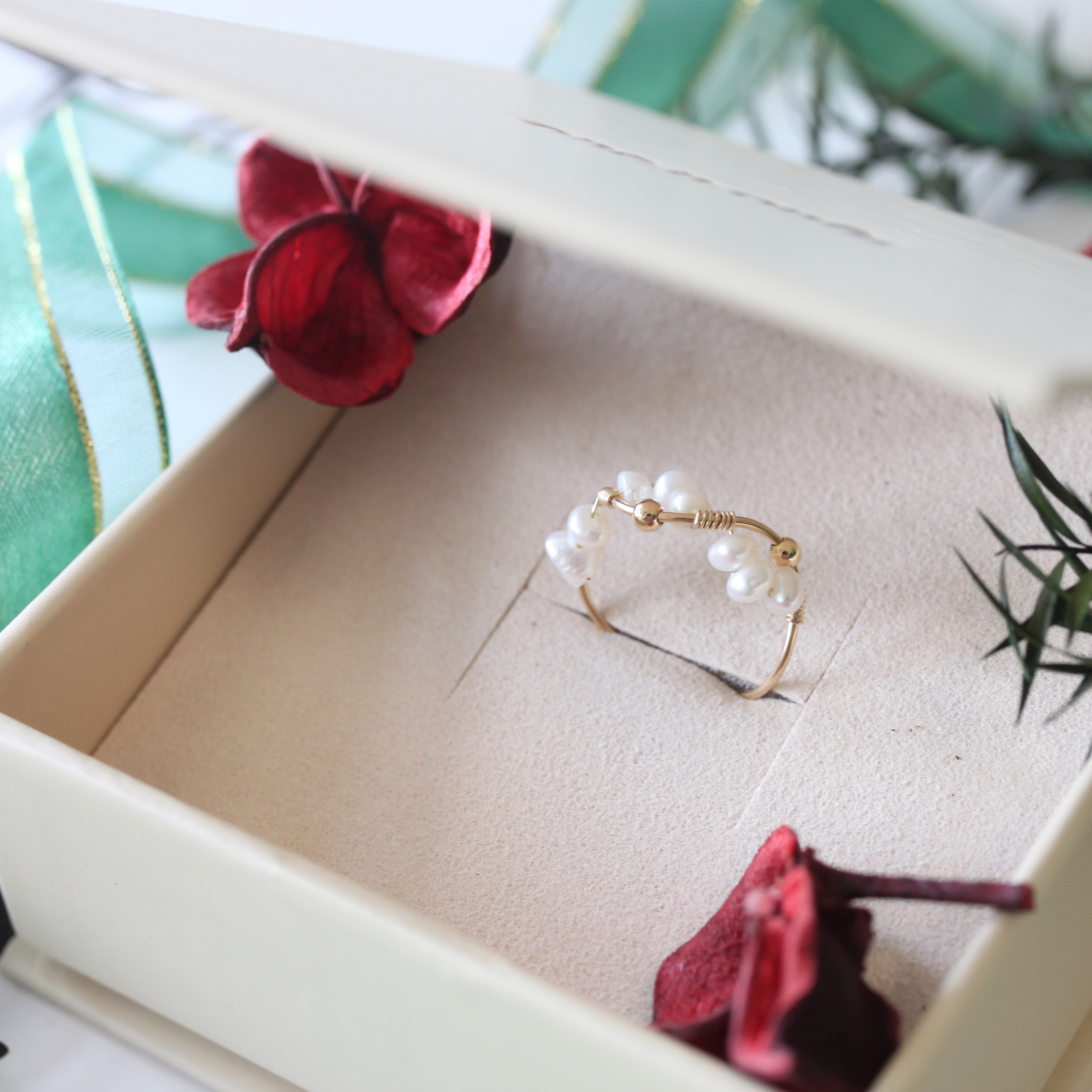 【One N Only】【母親節禮物】相伴 天然白色淡水珍珠14KGF包金耳針耳夾