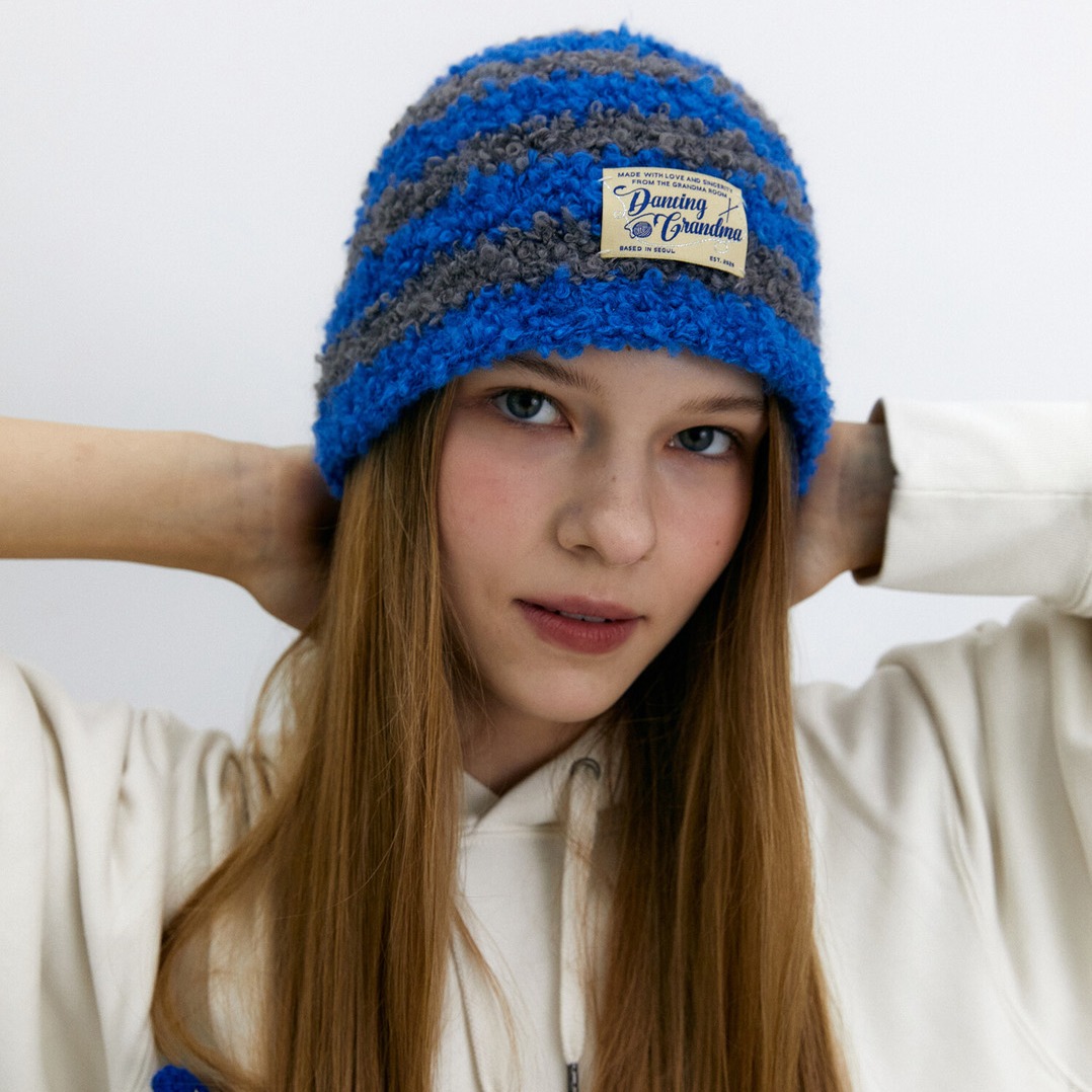 [Dancing Grandma] 獨家|韓國小眾品牌|生日禮物|聖誕禮物|交換禮物|感謝禮|打氣禮|閨蜜禮|紀念禮|毛帽(curly stripe beanie-black)