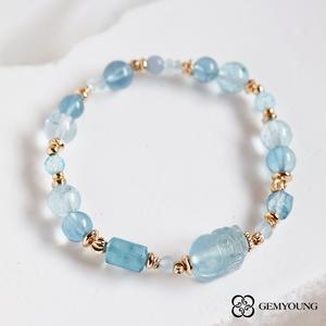 【JING YANG 晶漾】天然水晶手鍊海藍寶貔貅 | 招財納福 穩定情緒