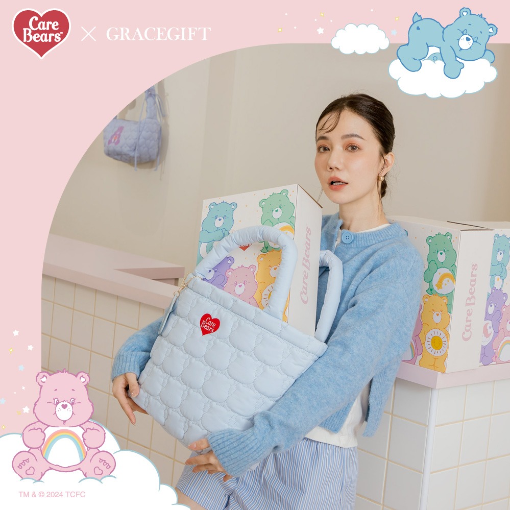 【Grace Gift 】Care Bears-透明尼龍托特包|任選粉紅、米白、藍、紫|禮物推薦