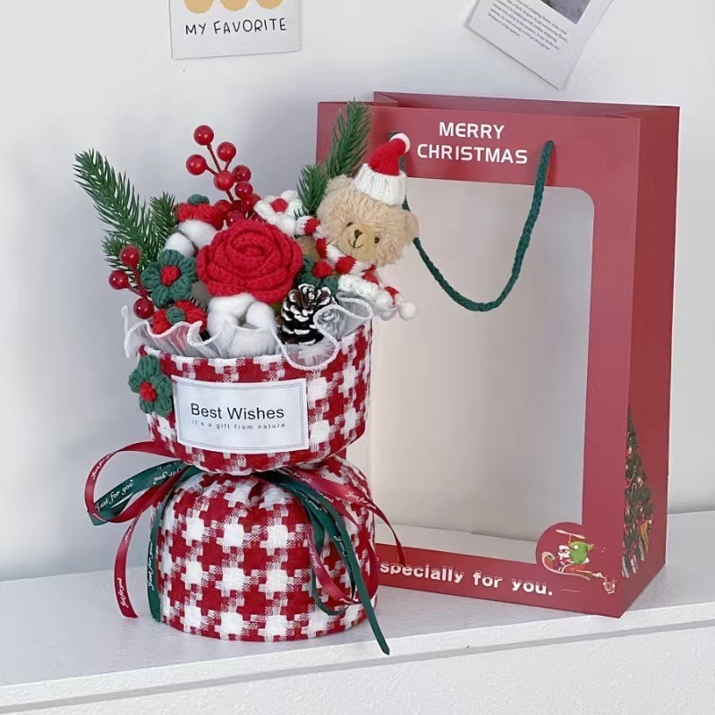 預購【LAMIE】棕色晚落繁花針織混合花束 針織花束 花束