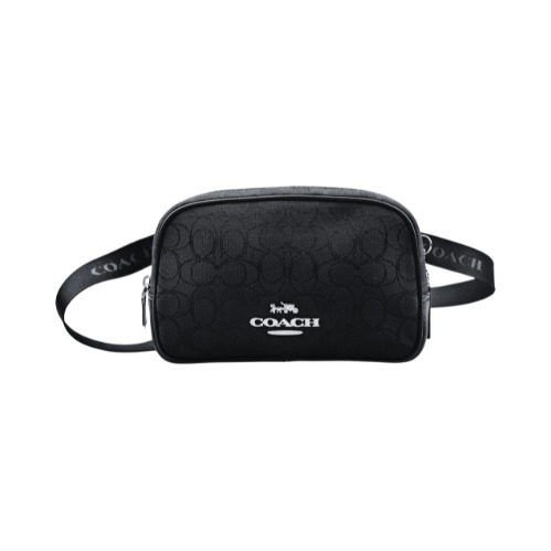[平輸版] 【COACH】黑色荔枝紋LOGO字印帆布織帶手提/斜背小款立體方包 真品平輸