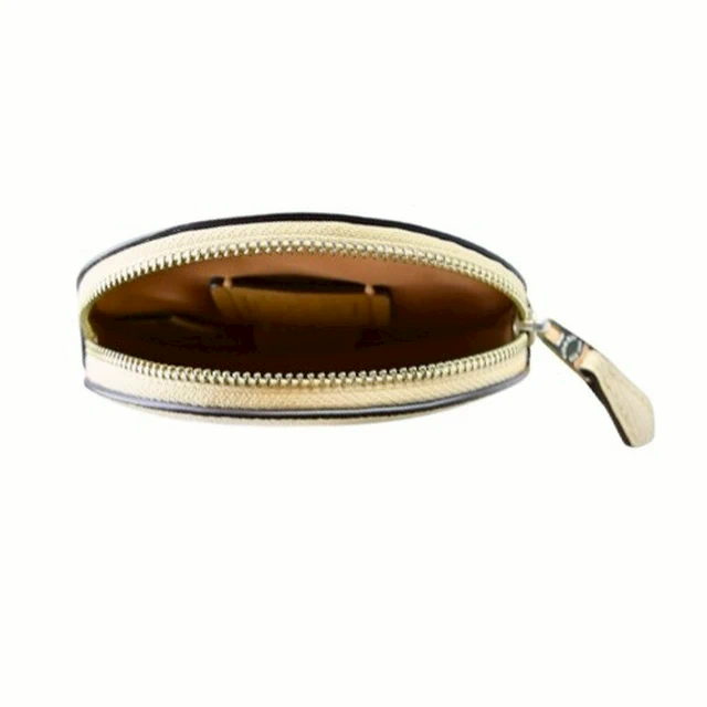 [平輸版] 【COACH】金屬珠光古銅色C Logo PVC 拼接防刮皮前卡夾鑰匙零錢包 真品平輸