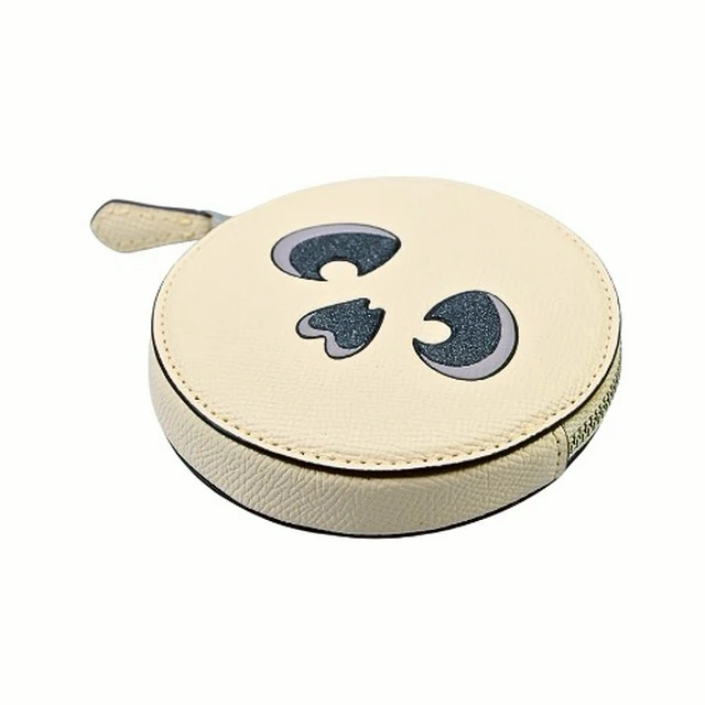 [平輸版] 【COACH】仿刺繡銀色亮粉燙印蝴蝶皮雕粉膚色素面皮革鍊帶頸掛斜背方型卡夾零錢小廢包 真品平輸