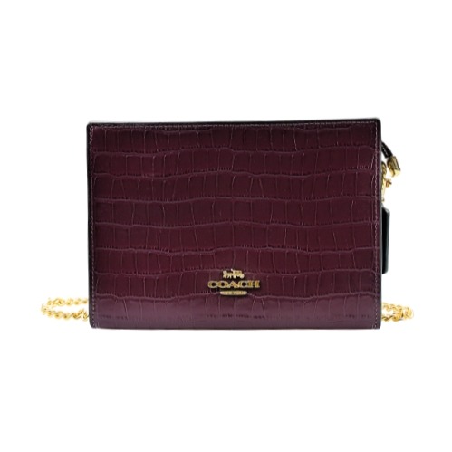 [平輸版] 【COACH】霧霾藍素面全皮釦式翻蓋WOC斜背皮革鏈帶包 真品平輸