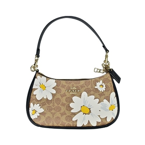[平輸版] 【COACH】 SLIM波卡圓點印花黑色荔枝紋皮革方型小款斜背包 真品平輸