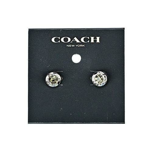 [平輸版] 【COACH】金色圓牌LOGO水鑽點綴湖水綠細版扣式手環 真品平輸