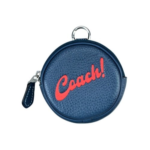 [平輸版] 【COACH】冰川藍C LOGO PVC拼接同色皮革鏈帶方型卡夾零錢包 真品平輸