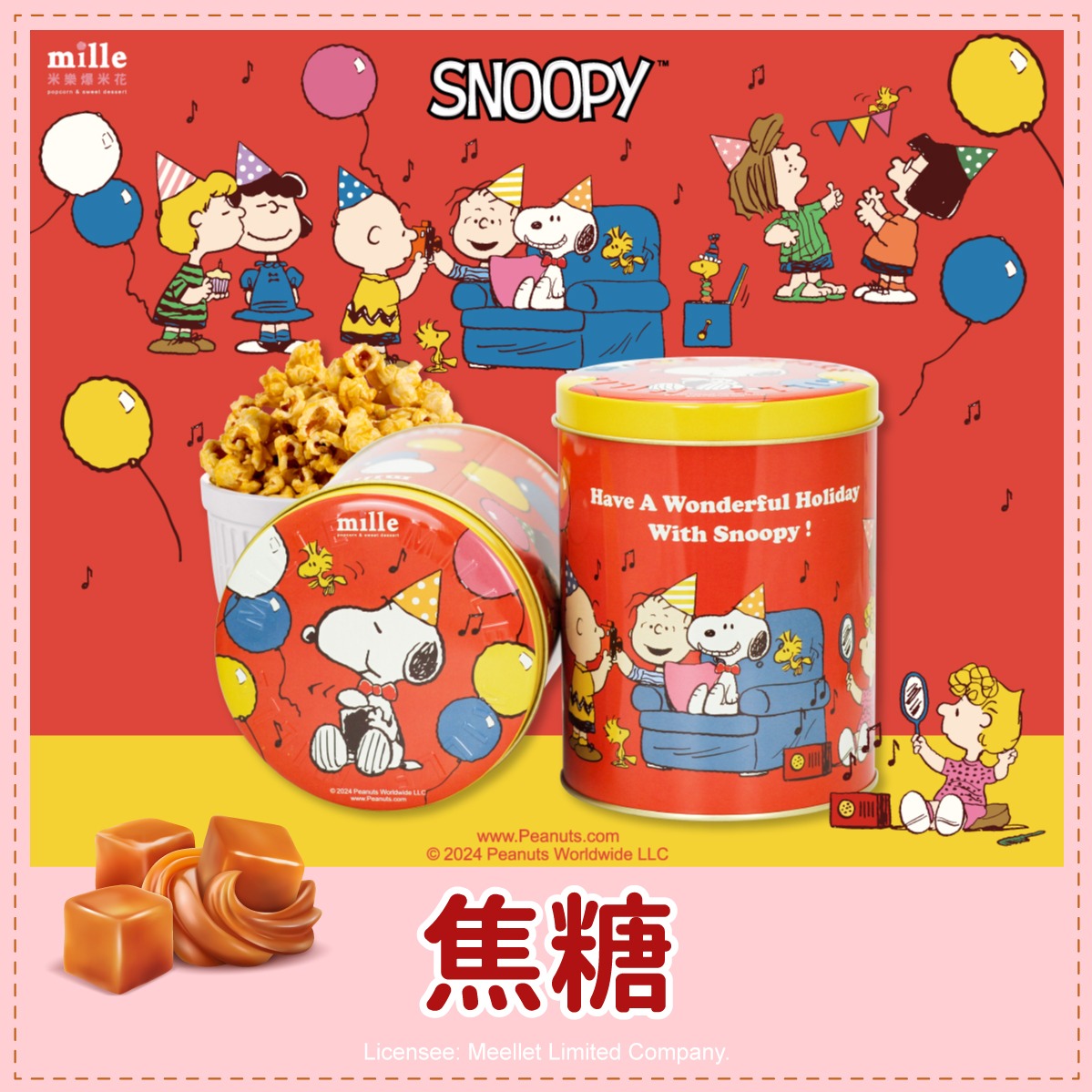 【米樂繽紛爆米花】史努比紅冬天外套罐爆米花