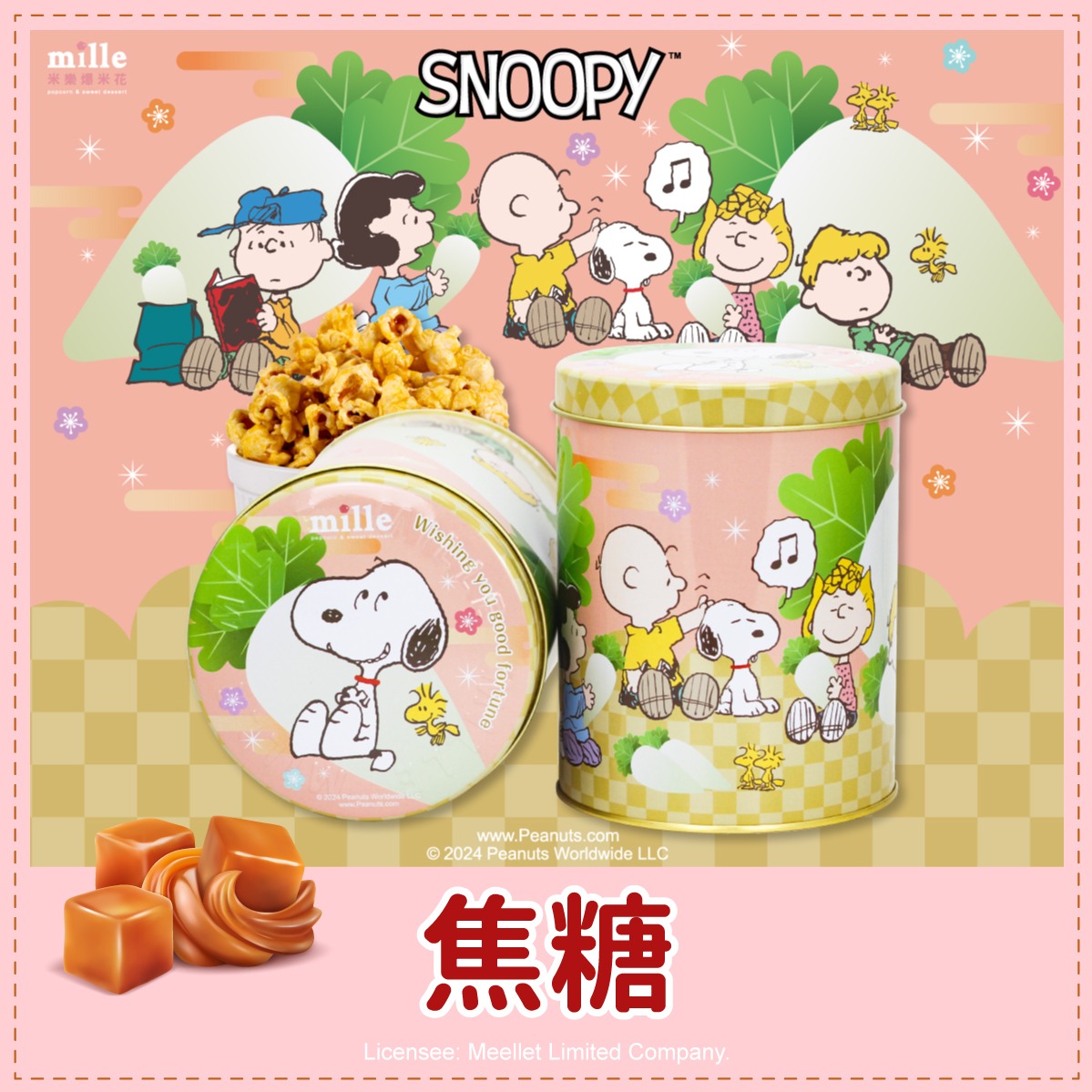 【米樂繽紛爆米花】史努比粉帽福氣走春罐爆米花