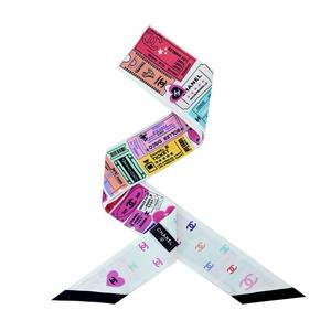 [平輸版] CHANEL 香奈兒車票印花雙面Twilly真絲絲巾/髮帶(奶白色)