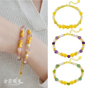 【金喜飛來】黃金手鍊雙貔貅珍珠水晶多色選(0.15錢±0.01)【快速出貨】