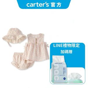【Carter’s官方授權】小碎花天地純棉3件組套裝(尿布褲/上衣/帽子) | 小套裝 三件組 週歲生日禮首選