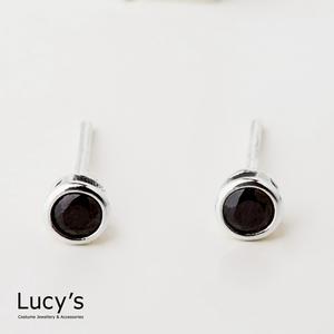【Lucy's】925純銀 圓框黑鑽-小 耳環 (23198)