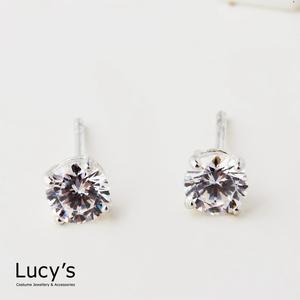 【Lucy's】925純銀 四爪圓鑽-0.5CM 耳環 (二色) (23219/65564)