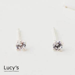 【Lucy's】925純銀 四爪圓鑽-0.3CM 耳環 (二色) (23204/65562)