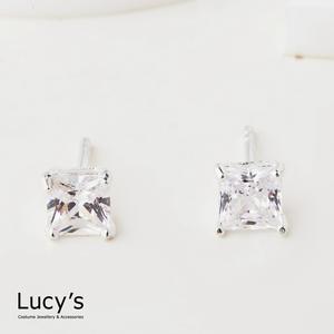 【Lucy's】925純銀 四爪方鑽-大 耳環 (23191)