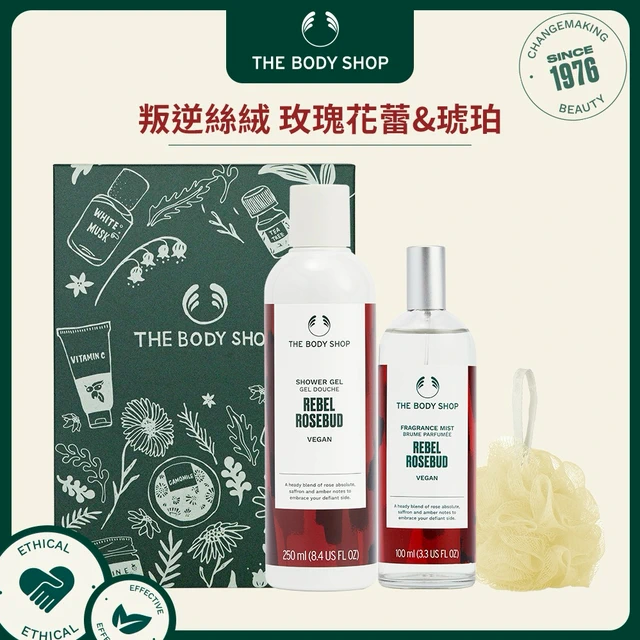【The Body Shop美體小舖】玫瑰嫩膚輕潤沐浴組 | 禮物獨家 | 去角質沐浴膠50ml+滋養霜50ml